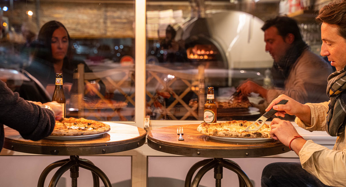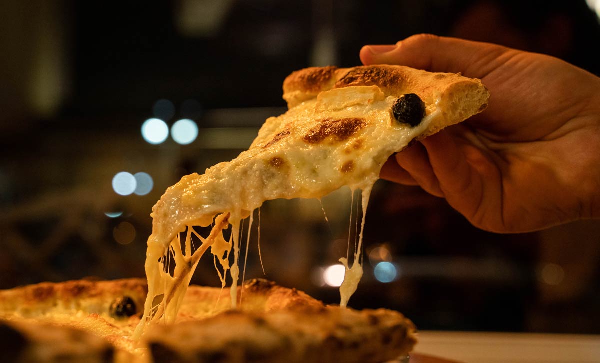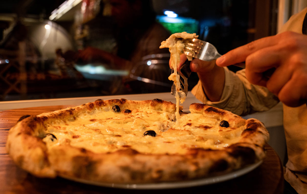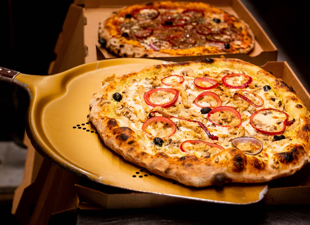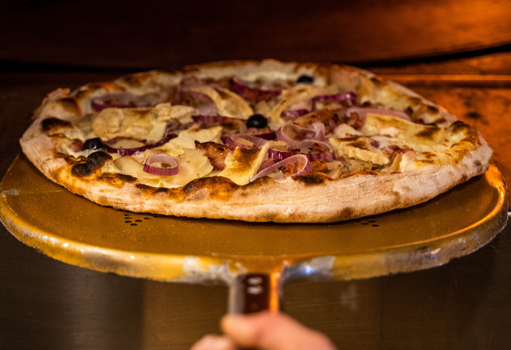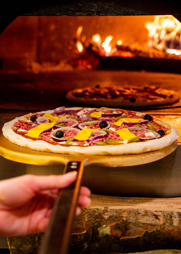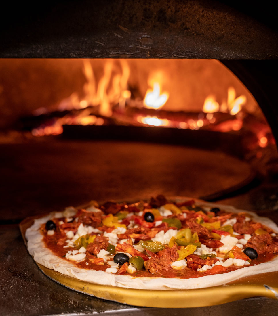 Découvrez notre carte de pizzas cuites sur place au feu de bois et préparées avec des produits frais d’origine italienne. Nous utilisons de la mozzarella fior di latte pour un goût plus savoureux.